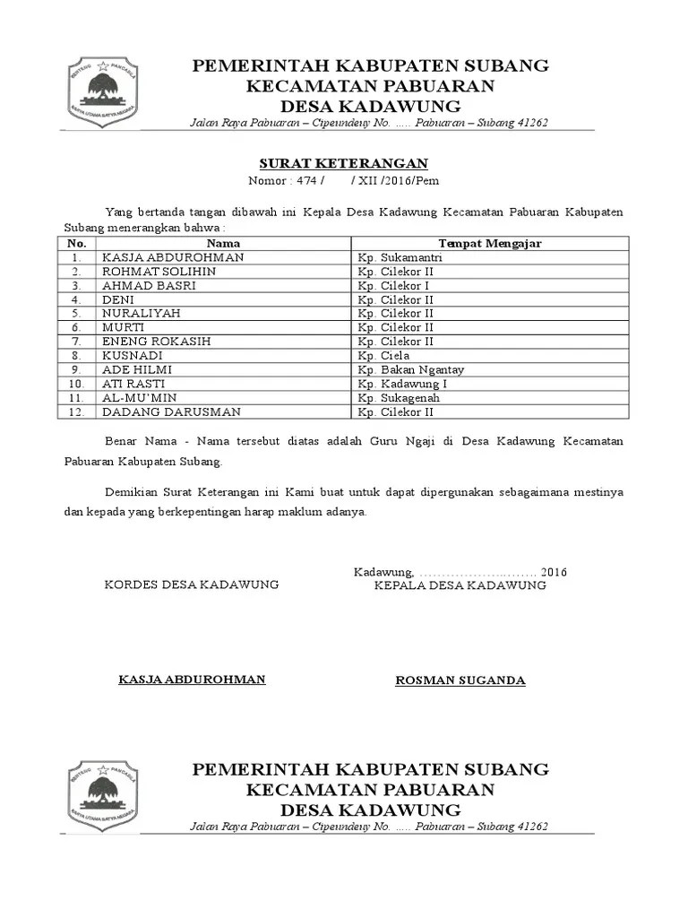 Contoh contoh surat keterangan sebagai khotib dan guru mengaji di masjid tutup . Pontren.com download contoh surat keterangan mengajar ustadz tpa taman pendidikan alquran dari kepala atau pimpinan lembaga dalam format doc . Kampung ciwalahir rt/rw 04/04 desa. Petunjuk teknis pemberian insentif guru ngaji. Guru tk dan guru ngaji sebaiknya prioritas selanjutnya, ujar laila dalam.